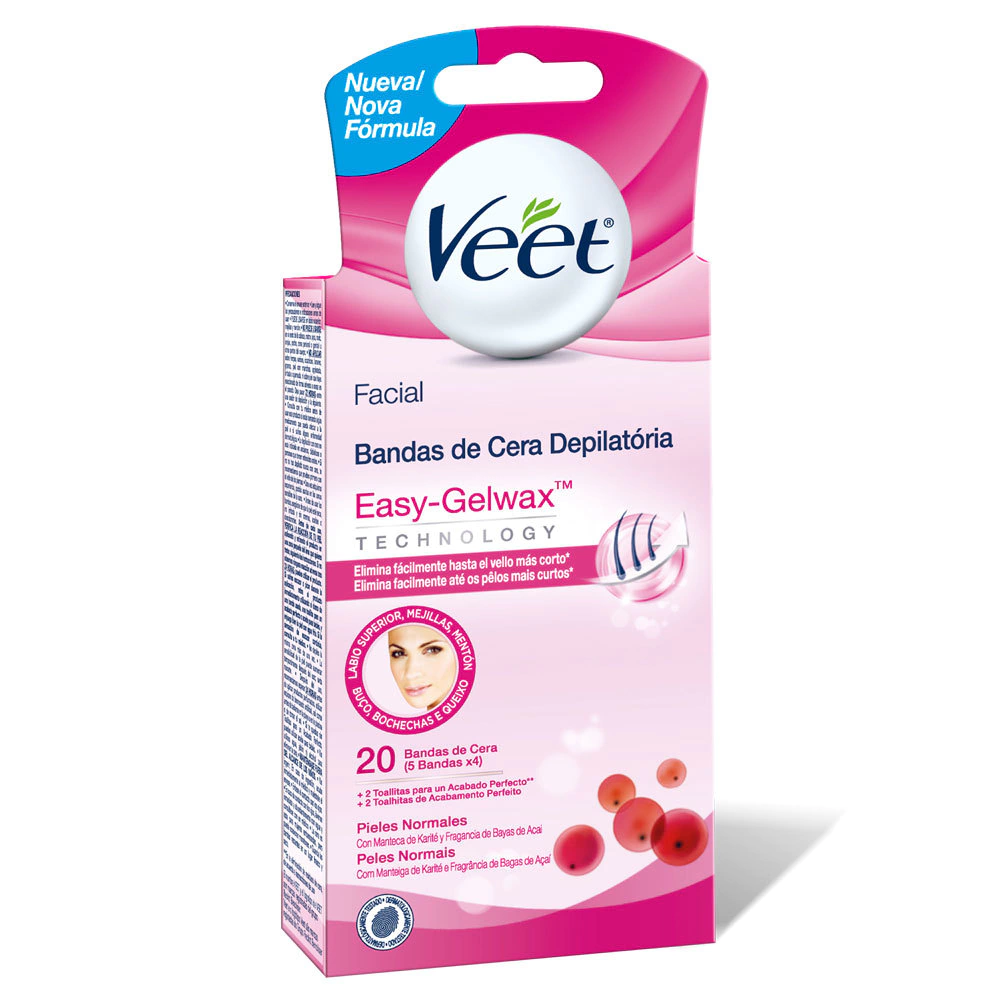 Bandas Depilatorias Veet Facial Piel Normal x 16 unidades